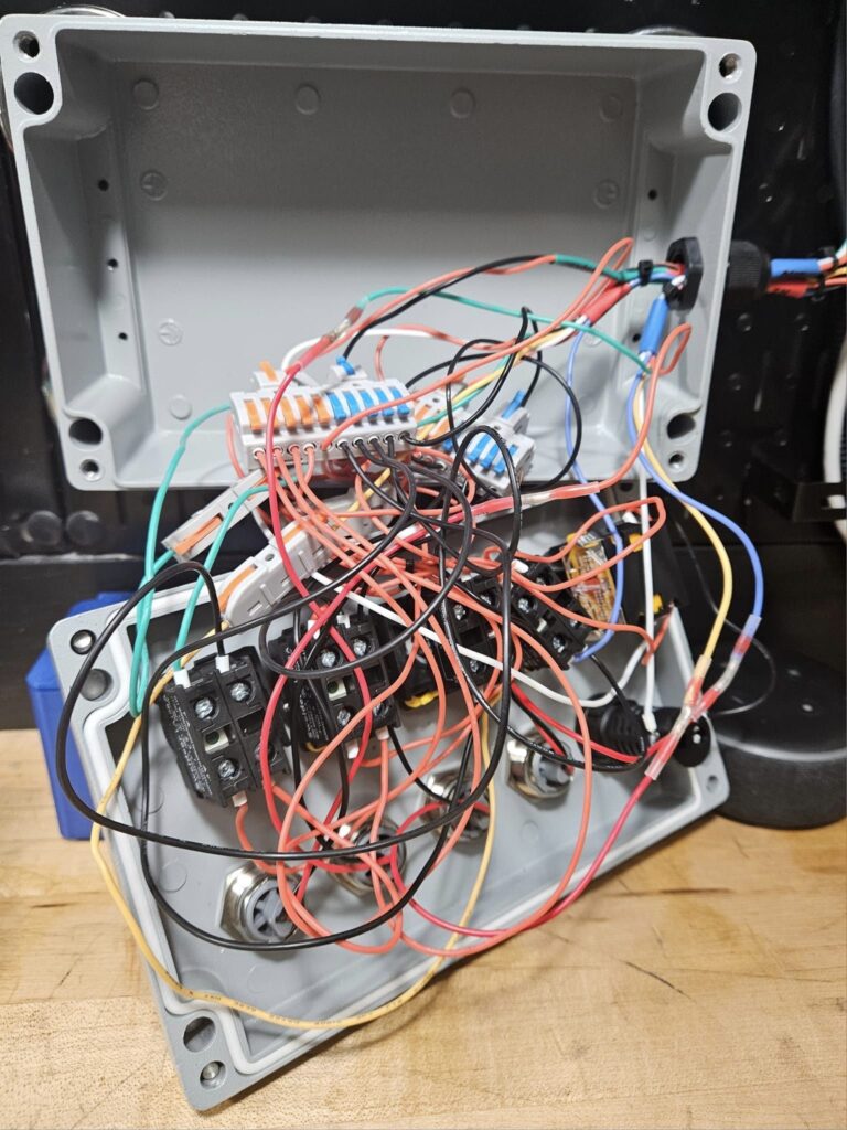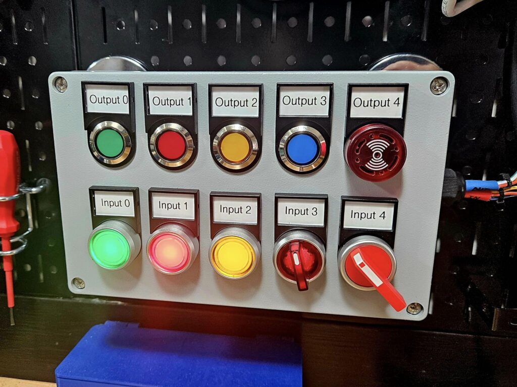 Then I just needed to build the Input/Output trainer. I ordered all the parts from China via Aliexpress to save money. Everything went together smoothly, and it gave me an opportunity to use my new Knipex Ferrule Crimpers (they rock). The trainer has 4 Inputs (pushbuttons and switches) and 4 outputs (LEDs and an alarm). I also added a 24v fan to a rail as an additional output.
