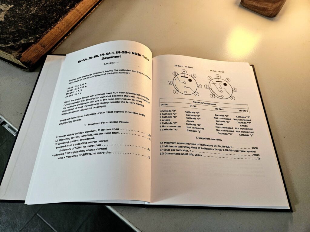 I self-published a book! This book is a restoration of the original Russian Nixie Tube datasheets (translated into English). The original technical drawings were faded and difficult to read, so I have enhanced them as well as I could. To this end, I used Photoshop and various AI tools. At times I had to recreate the drawings by hand or find replacements from other sources. I also reformatted the text for readability and added some fun original art. Though I put this book together for my own reference, I thought other makers might find it useful as well, so I decided to make it available to purchase.